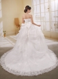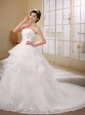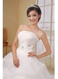Luxurious Strapless Neckline Lace Princess Beaded Decorate Waist Wedding Dress
