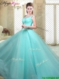 Luxurious Straps Beading Sweet 16 Dresses  in Aqua Blue