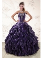 Luxurious Sweetheart Ball Gown Purple Quince Dresses with Embroidery