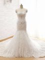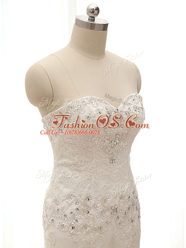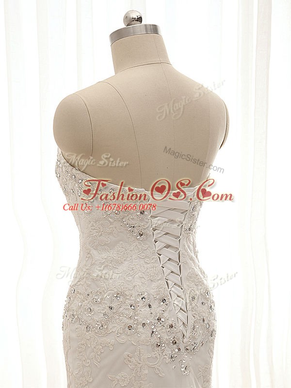 Luxurious Sweetheart Sleeveless Lace Wedding Gowns Beading and Lace and Appliques Court Train Lace Up
