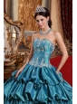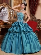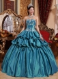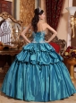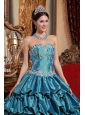Luxurious Teal Quinceanera Dress Sweetheart Taffeta Appliques Ball Gown