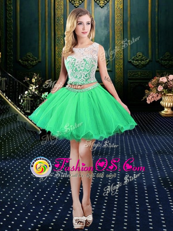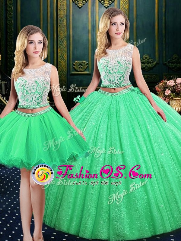 Luxurious Three Piece Scoop Sleeveless Lace and Sequins Lace Up 15 Quinceanera Dress