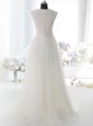 Luxurious Tulle Square Sleeveless Side Zipper Lace and Hand Made Flower Bridal Gown in White