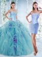 Luxurious Visible Boning Aquamarine Detachable Quinceanera Skirts with Beading