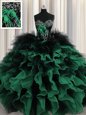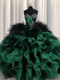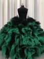Luxurious Visible Boning Peach Quinceanera Gowns Military Ball and Sweet 16 and Quinceanera and For with Beading and Ruffles Scalloped Sleeveless Lace Up