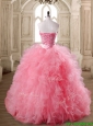 Luxurious Watermelon Red Sweet 16 Dress with Beading and Ruffles