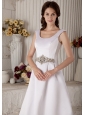Luxurious Wedding Dress A-line / Princess Scoop Beading Court Train Satin