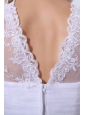 Look gorgeous in this wedding gown.This slim fitting style is designed to skim your curves and show off a toned figure.The ruching bands on the waist flirts the busts.Lace overlay covers the entire gown for a delicate look that's romantic for your special day.The sweetheart neckline is covered with pretty lace sleeves shaped a V-neck which streches to the back and ends up with a zipper closure.