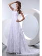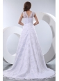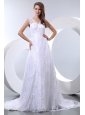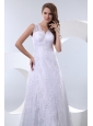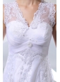 Luxurious Wedding Dress A-line V-neck Court Train Taffeta and Lace