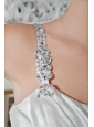 Do you want to show offer your good figure fully? This is a best choice for you. This gown makes your shoulder distinctive with the one shoulder strap accented with floral appliques and crystals. Pleated bodice flatters your slim waistline ideally and a beaded brooch texture starts a mermaid silhouette with a lovely train encrusted with pleats and folds. A lace up tie back finishes the perfect look.
