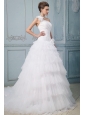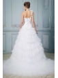 Luxurious Wedding Dress With Ruffled Layered One Shoulder Hand Made Flowers