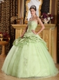 Make yourself noble with this gorgeous and beautiful yellow green strapless quinceanera dress. This quinceanera features a sweetheart neckline accented with beadings and the bodice ruched and beaded. The midsection of the dress is gathered by some rolling flowers. The underlayer of the skirt is made of many layers of great tulle fabric that create lots of fullness in the design.