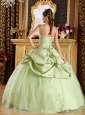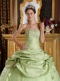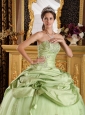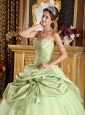 Luxurious Yellow Green Quinceanera Dress Strapless Tulle and Taffeta Beading Ball Gown