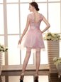 Home >  Prom Dresses >  Perfect Prom Dresses > Luxury Baby Pink A-line High-neck Sleeveless Chiffon Mini Length Zipper Lace Evening Dress
