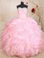 Luxury Baby Pink Sweetheart Neckline Beading and Ruffles 15 Quinceanera Dress Sleeveless Lace Up