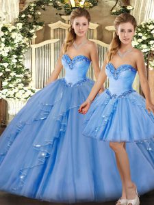 Luxury Beading and Ruffles Vestidos de Quinceanera Baby Blue Lace Up Sleeveless Floor Length