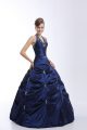 Luxury Floor Length Lace Up Sweet 16 Quinceanera Dress Royal Blue and In with Embroidery and Pick Ups