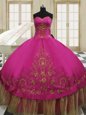 Luxury Fuchsia Sweet 16 Dress Military Ball and Sweet 16 and Quinceanera and For with Beading and Embroidery Sweetheart Sleeveless Lace Up