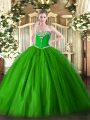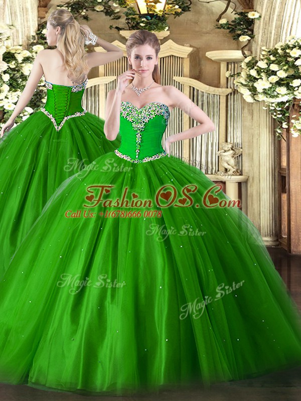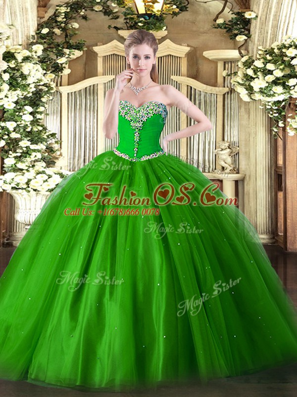 Luxury Green Ball Gowns Tulle Sweetheart Sleeveless Beading Floor Length Lace Up Sweet 16 Dresses