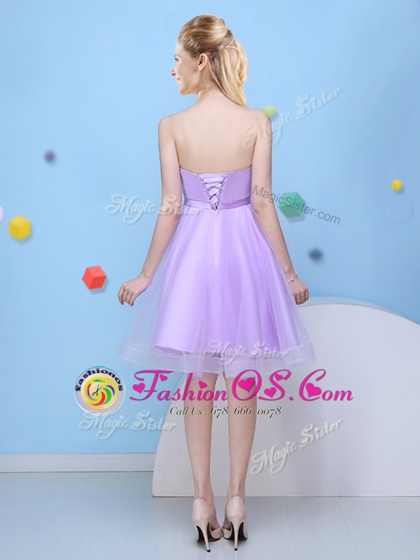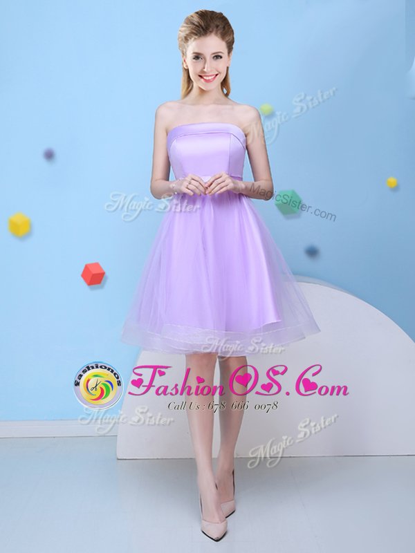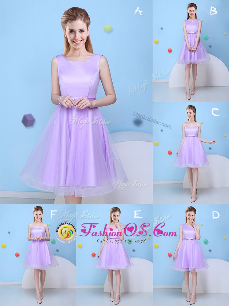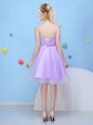 Luxury Lavender Sleeveless Bowknot Knee Length Dama Dress for Quinceanera