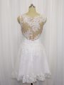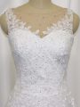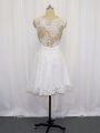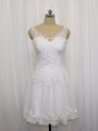 Luxury Mini Length White Bridal Gown Tulle Sleeveless Beading and Lace