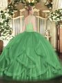 Home >  Quinceanera Dresses >  Custom Made Quinceanera Dresses > Luxury Olive Green Straps Neckline Beading and Ruffles 15 Quinceanera Dress Sleeveless Zipper