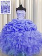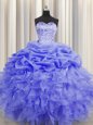 Home >  Quinceanera Dresses >  Custom Made Quinceanera Dresses > Luxury Pick Ups Visible Boning Sweetheart Sleeveless Lace Up 15th Birthday Dress Purple Organza