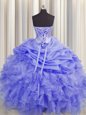 Luxury Pick Ups Visible Boning Sweetheart Sleeveless Lace Up 15th Birthday Dress Purple Organza