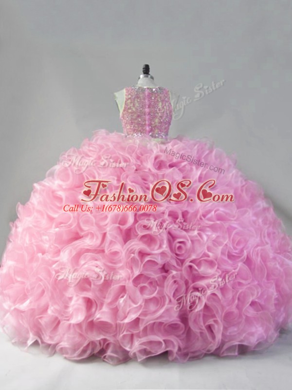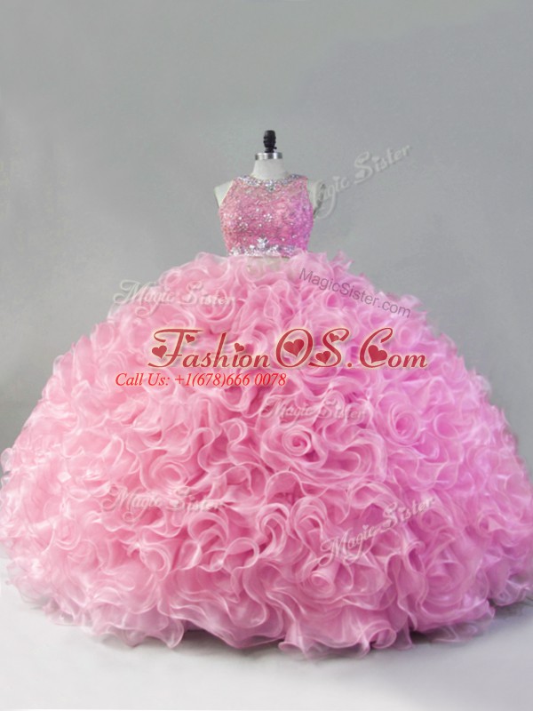 Luxury Pink Scoop Neckline Beading Ball Gown Prom Dress Sleeveless Zipper