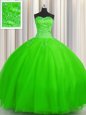 Luxury Puffy Skirt Sleeveless Tulle Lace Up Sweet 16 Dress for Military Ball and Sweet 16 and Quinceanera