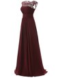Home >  Prom Dresses >  Unique Prom Dresses > Luxury Scoop Burgundy A-line Appliques Homecoming Dress Zipper Chiffon Sleeveless Floor Length