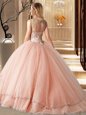 Home >  Quinceanera Dresses >  Cute Quinceanera Dresses > Luxury Scoop Sleeveless Tulle Brush Train Lace Up Sweet 16 Dresses in Watermelon Red for with Beading