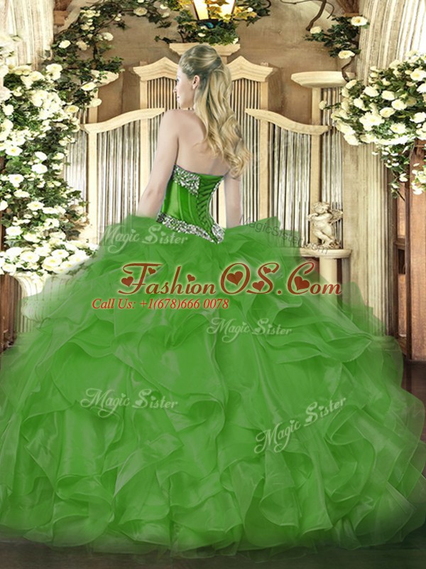Luxury Sweetheart Sleeveless Organza 15 Quinceanera Dress Beading and Ruffles Lace Up