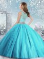 Luxury Tulle Clasp Handle Scoop Sleeveless Floor Length Sweet 16 Dresses Beading and Sequins