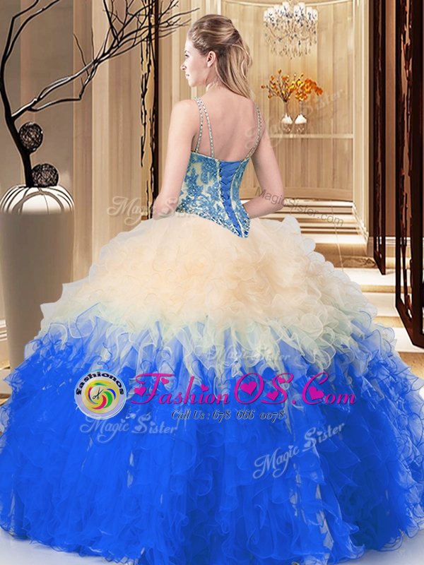Luxury White And Red Straps Neckline Appliques and Ruffles Quinceanera Dress Sleeveless Lace Up
