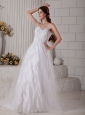 Magnificent Wedding Dress A-line Sweetheart Appliques Brush Train Tulle