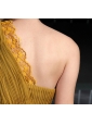 Amaze him in this dazzling full length evening dress. The single shoulder strap is edged with tiny ruffles and exquisite embroideries and starts the vertical pleating that runs throughout this style. A smooth waistband flattering at the waist cinch this look and show off a slender waist.The skirt cascades to the floor in soft pleats, for a delicate and sophisticated look.A long pleated trailing optimizes the dress amazingly.