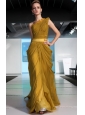 Maize Column / Sheath One Shoulder Floor-length Chiffon Ruch Prom / Evening Dress