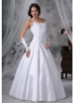 Mason City Iowa  Embroidery Decorate Bodice Straps Floor-length Ball Gown Satin Modest Style Wedding Dress For 2013