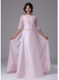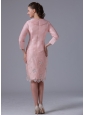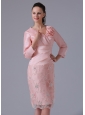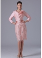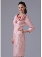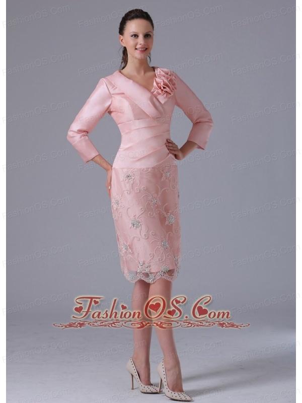 Home >  Special Occasion Dresses >  Mother of the Bride Dresses > Mdest Baby Pink Long Sleeves Mother Of The Bride Dress With Hand Made Flowers Knee-length