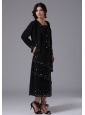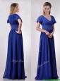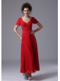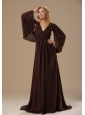 The beautiful mothers, get ready to be pampered with this dress. This mother's dress is absolutely gorgeous. With two full-length sleeves and the V neckline, the bodice is modest yet sexy, while the flowers along the neckline adds more charming to you. The ruching on the waist will definitely flatter your figure. You will be more pretty thanks to the delicate lace ovelay on the skirt. A hidden zipper up back finishes the gorgeous design.
