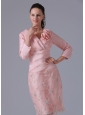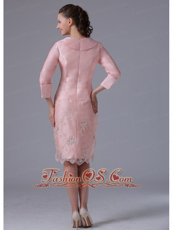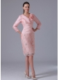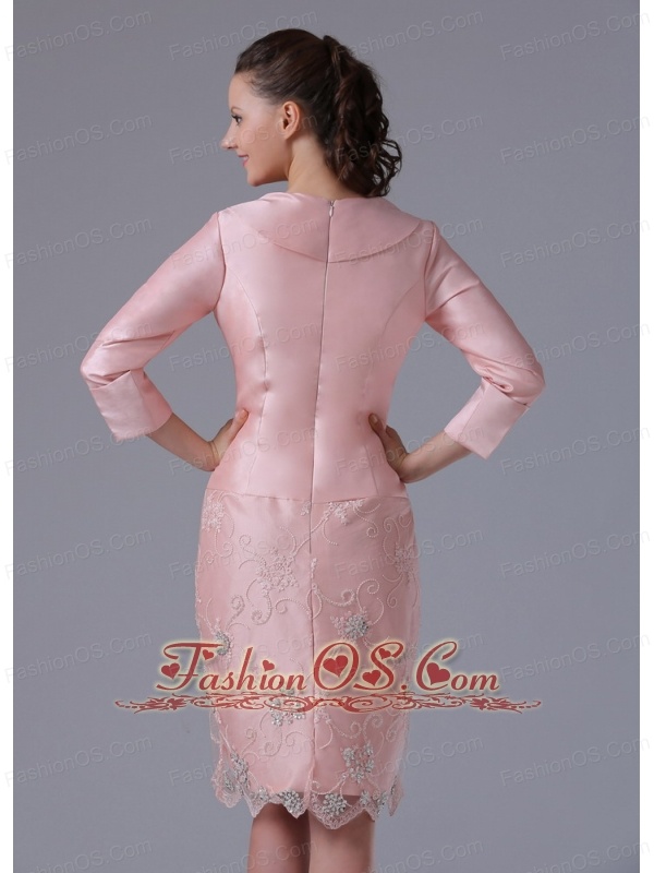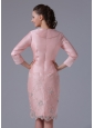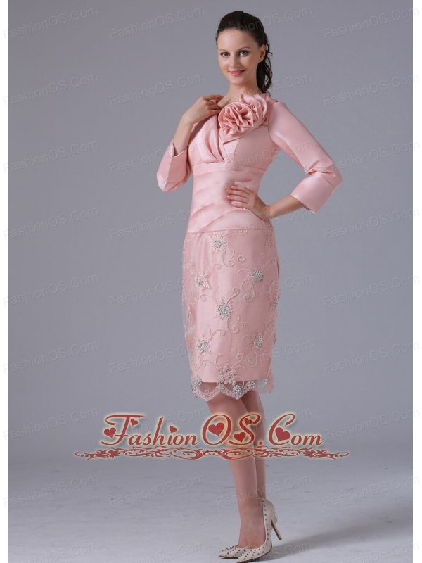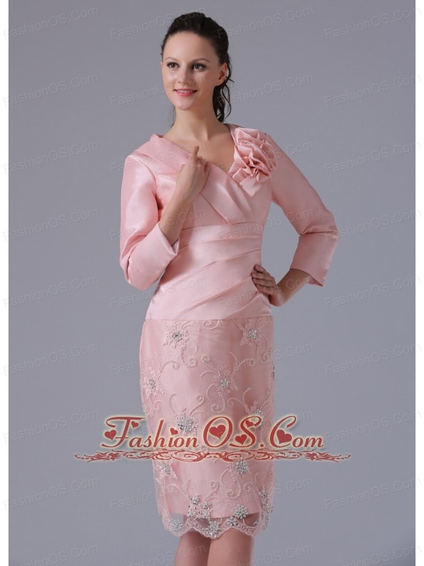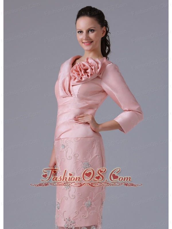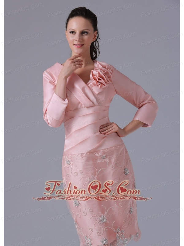 Mdest Baby Pink Long Sleeves Mother Of The Bride Dress With Hand Made Flowers Knee-length