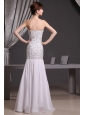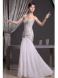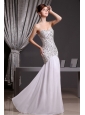 Stunning and dramatic! You are sure to be the belly of the party in this fabulous mermaid dress. This white chiffon sweetheart prom dress features the sweetheart bodice with overlaid beading on the whole bodice. The mermaid skirt sways freely when you move. A hidden zipper completes the look. This one puts you to mind of a traditional belle. Take the chance and bring it home!