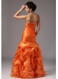 Stunning and dramatic! The fitted bodice has a modefied sweetheart and bust with shining beading to create a unique effect. The drapped pleated organza fabric hug hips to outline your well-tone body. The bottom of the mermaid separated by a beaded waistband features ruffles in a rippling wave appearance. A hidden zipper makes for easy off and on and secures the dress in place.