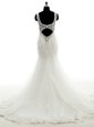 Mermaid Beading and Lace and Appliques Wedding Gowns White Clasp Handle Sleeveless With Train