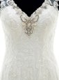 Home >  Wedding Dresses >  Plus Size Wedding Dresses > Mermaid Beading and Lace and Appliques Wedding Gowns White Clasp Handle Sleeveless With Train