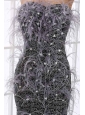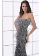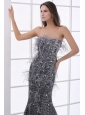 Mermaid Black Festher Strapless Sequins Brush Train Prom Dress