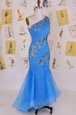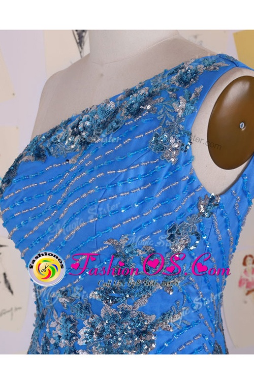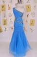 Mermaid Blue One Shoulder Neckline Beading Dress for Prom Sleeveless Zipper
