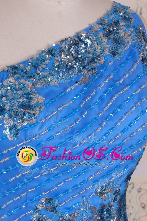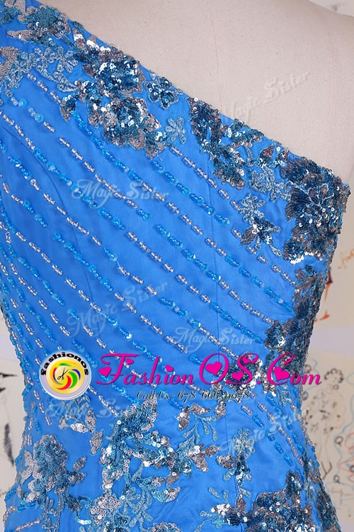 Home >  Prom Dresses >  Perfect Prom Dresses > Mermaid Blue One Shoulder Neckline Beading Dress for Prom Sleeveless Zipper