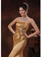 Mermaid Champagne Mother Of Bride Dress Clearance With Strapless Beaded and Bow Decorate In Pinetop Arizona